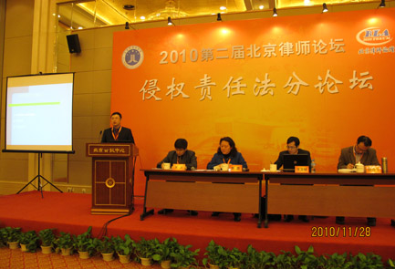 [摘要]王戬律师在2010年第二届北京律师论坛侵权责任法分论坛中担任主讲人